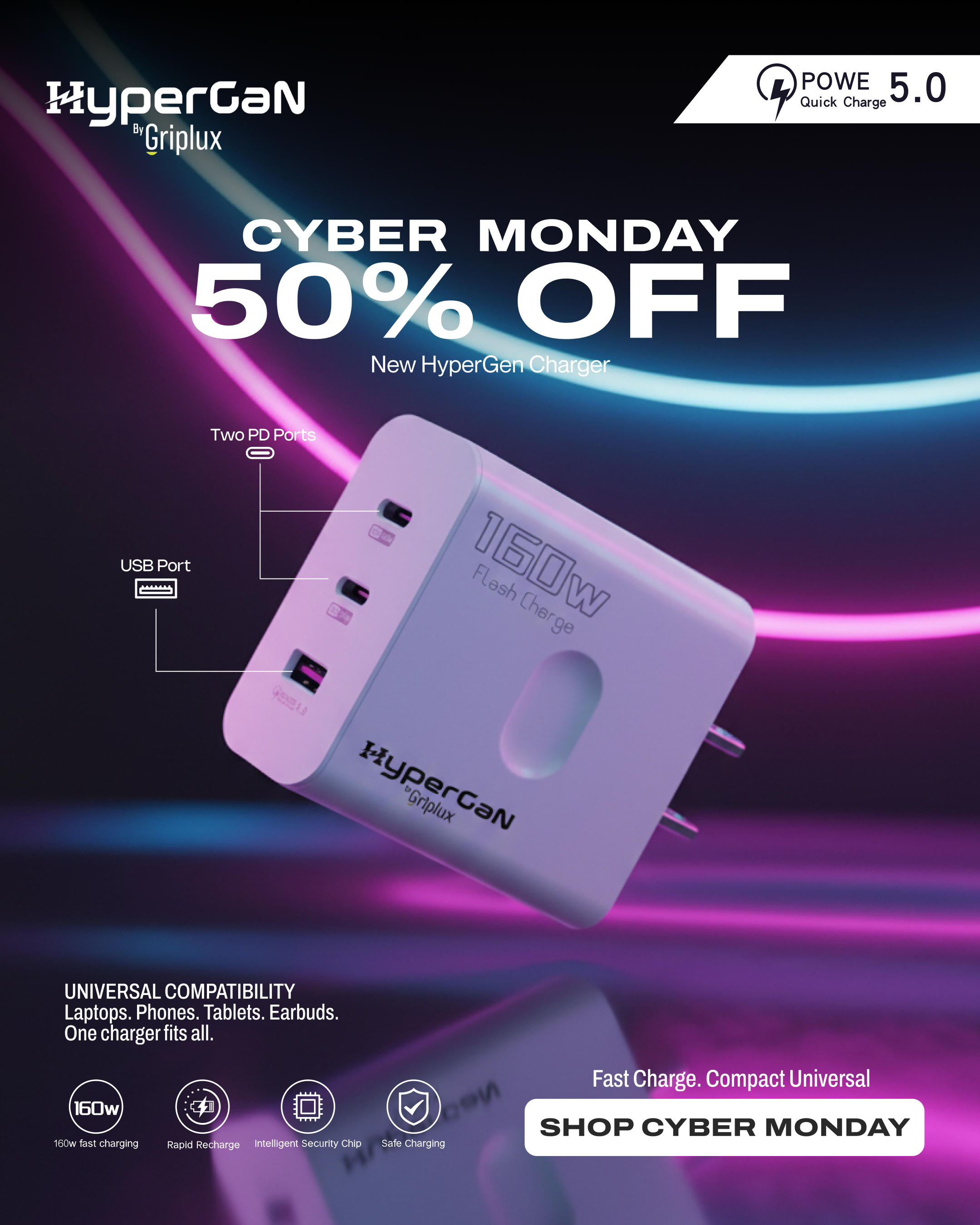 HyperGaN™ 160W Charger by GripLux 50% Off Cyber Monday Sale
